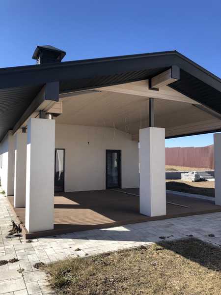 Продам будинок 294 м. кв. 20 соток. Старі Кодаки, вул. Ювілейна. Окрема будова 51м.кв під сауну з терасою для барбекю та госпблоком. Архітектурний проект. Будинок 2 поверхи. На першому поверсі хол, вітальня-кухня, санвузол, передпокій. У вітальні передбачено вихід під камін. Панорамні розсувні вікна з виходом на заднє подвір'я та гостьовий будиночок. Другий поверх - 4 спальні, 2 вбиральні та санвузол. Є вихід на величезну терасу другого поверху. Висота стелі 3 м. Будинок під чистове оздоблення, всі комунікації заведені, зроблена тепла підлога. Ділянка приватизована, обгороджена. Автоматичні ворота, двір викладено плиткою. У будинку також є підвал для топкової та пральної зони. 150 000 уе. + послуги агенції. т.0931197428, 0960921280 Сергій, АН «Азбука жилья». www.azbuka.dp.ua, https://easyhata.site/8835