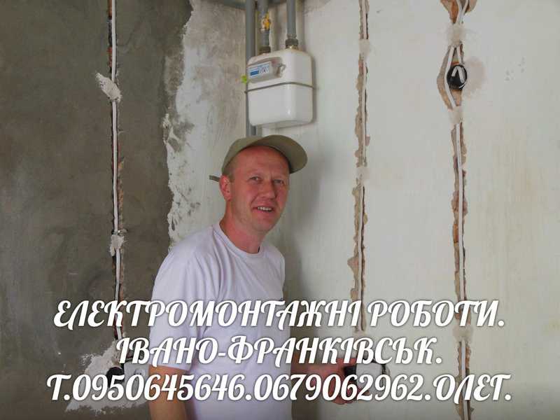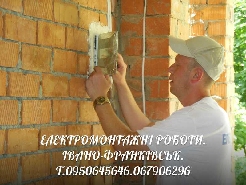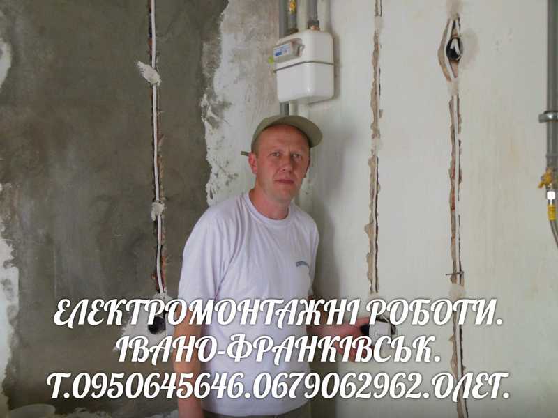 Електромонтажні роботи в новобудовах квартирах магазинах офісах котеджах.Заміна старої електропроводки на нову.Встановлення виключателів, розеток,світильників,бра,точкових світильників.Монтаж електролічильника,розпродільчого електрощитка, накладних або внутрішніх.Електромонтажні роботи проводимо у деревянних,залізобетонних,цегляних із штукатуркою чи без штукатурки конструкціях.Увага.Скрутки електрокабелів у розпродільчих коробках зварюемо зварочним апаратом. Можлива доставка необхідного для електромонтажу матерялу за передоплату Помірні ціни. Електромонтаж проводимо швидко, якісно. Можемо надати проект- схему розташування електропроводки за окремуплату Надаемо гарантію 10 років на фронт виконаних електромонтажних робіт У нас існуе гнучка система знижок на виконані електромонтажні роботи.Електромонтажні роботи проводимо в основному по Івано-франківській області. Дзвоніть не пошкодуетє.Олег.