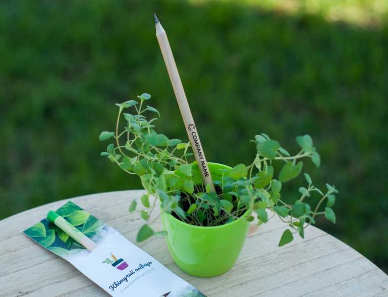 Екокубики – набори для вирощування рослин, як-от трав, квітів чи навіть дерев, у стильних дерев’яних кубах. Вони ідеально підходять для офісу чи дому, додаючи зелені в простір. Набори для вирощування мікрозелені – це корисний і трендовий подарунок, який дозволяє швидко отримати свіжу зелень для здорового харчування. Квітучі олівці з логотипом компанії – креативний варіант: після використання їх можна посадити, і з них виростуть квіти чи трави.Такі подарунки не лише радують, а й підкреслюють екологічну свідомість компанії.